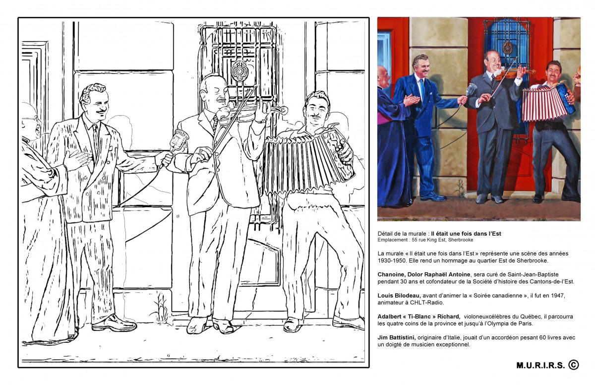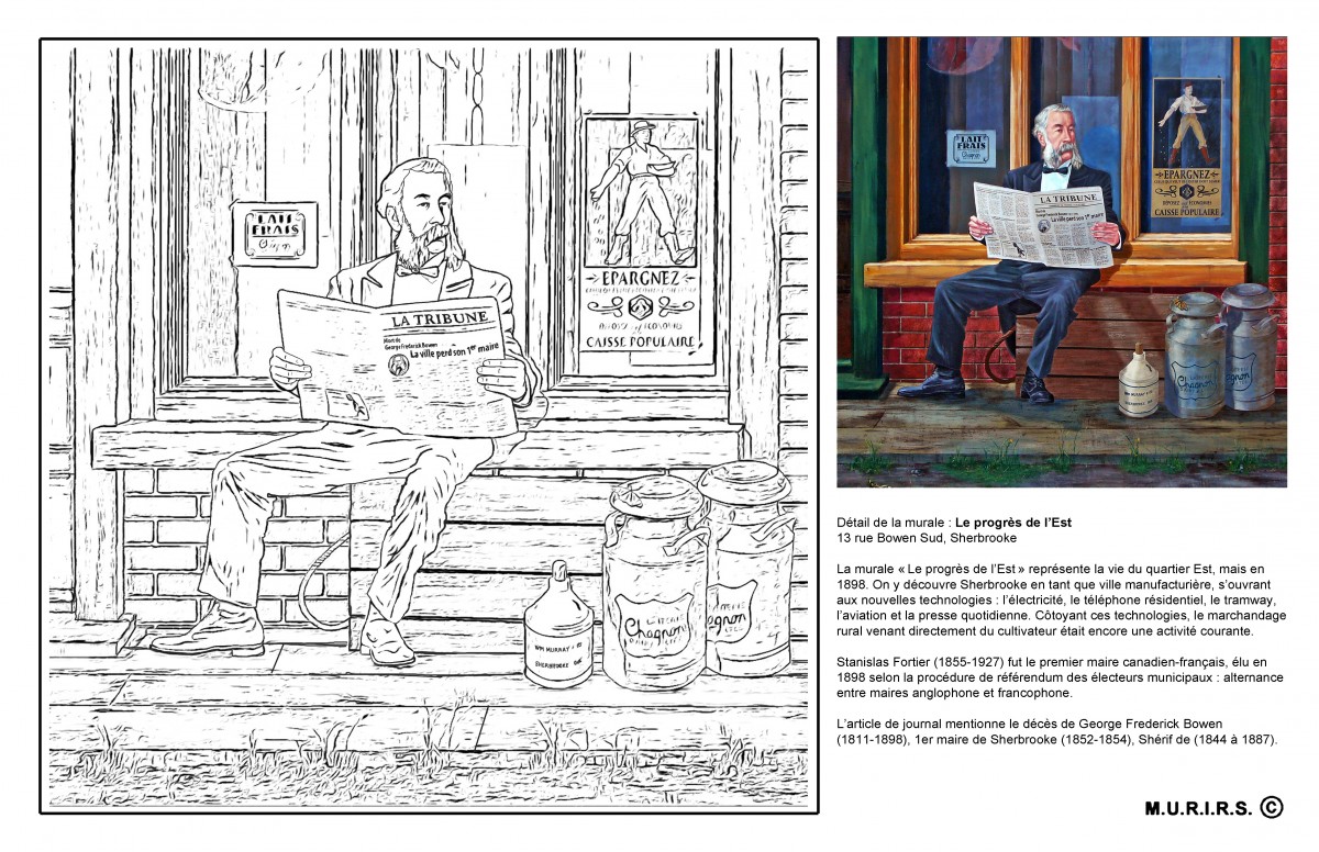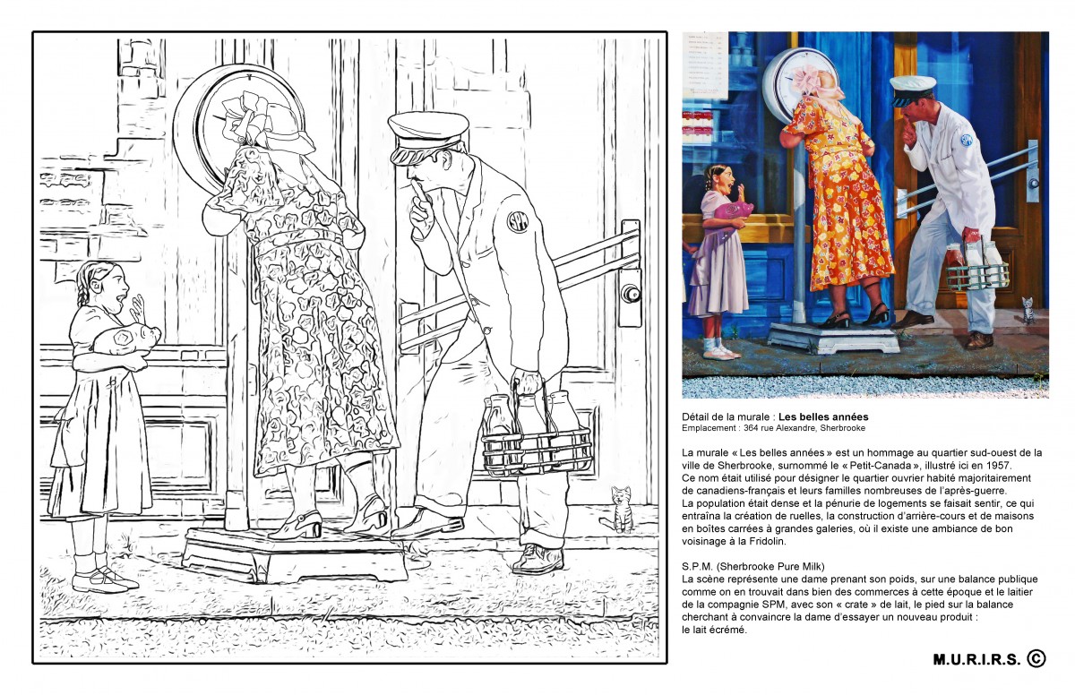 Savez-vous en quelle année fut construite la première gare de Sherbrooke? Qu’un quartier de la ville s’appelait « petit Canada »? Vous l’apprendrez – ça et bien d’autres choses – en vous penchant sur les 9 tableaux à colorier, tirés des Murales de Sherbrooke. Une gracieuseté de M. Serge Malenfant, président-fondateur de l’organisme M.U.R.I.R.S.