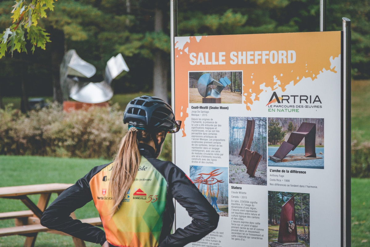 Envie d’une escapade à vélo accessible et inspirante? L’Estriade, propose 22 km (aller seulement) de pistes cyclables sécuritaires, majoritairement asphaltées et à faible dénivelé. De Granby à Waterloo, en passant par Roxton Pond et Bromont, le parcours est idéal pour les familles, les cyclistes du dimanche ou les amateurs de longues randonnées. L’élément distinctif? La Boucle culturelle Artria : un trajet de 56 km parsemé de près de 60 œuvres d’art monumentales en pleine nature. Véritable musée à ciel ouvert, ce circuit allie culture et plein air. Des haltes aménagées permettent de faire une pause, admirer les œuvres et profiter du paysage.
