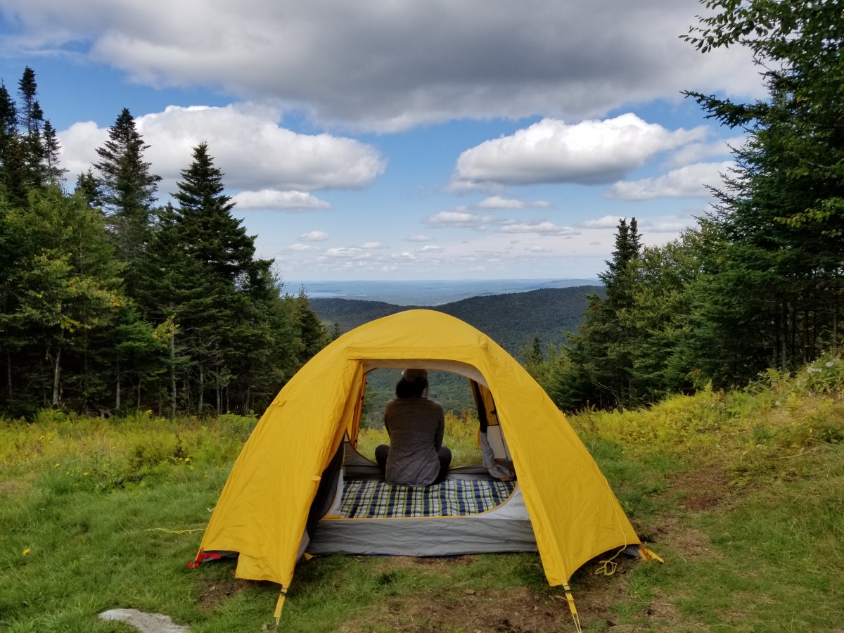 Eh oui, il est possible de planter sa tente sur le sommet du Mont Sutton! Pour ce faire, il vous faudra trimballer tout votre équipement sur une montée d'environ 2 km puisque les emplacements sont accessibles uniquement à pied. Répartis le long du sommet, à l'entrée des pistes de ski, les vingt et un emplacements de camping offrent tous intimité et vue splendide sur la région.