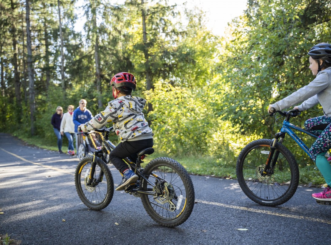 Le sentier de vélo de montagne Zigzagzoulou du Mont-Bellevue. Vic, 11 ans, et Colin, 8 ans.