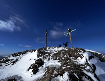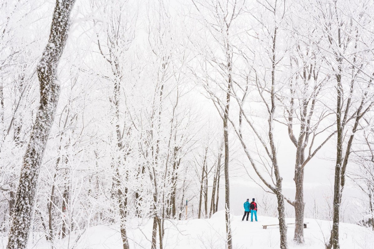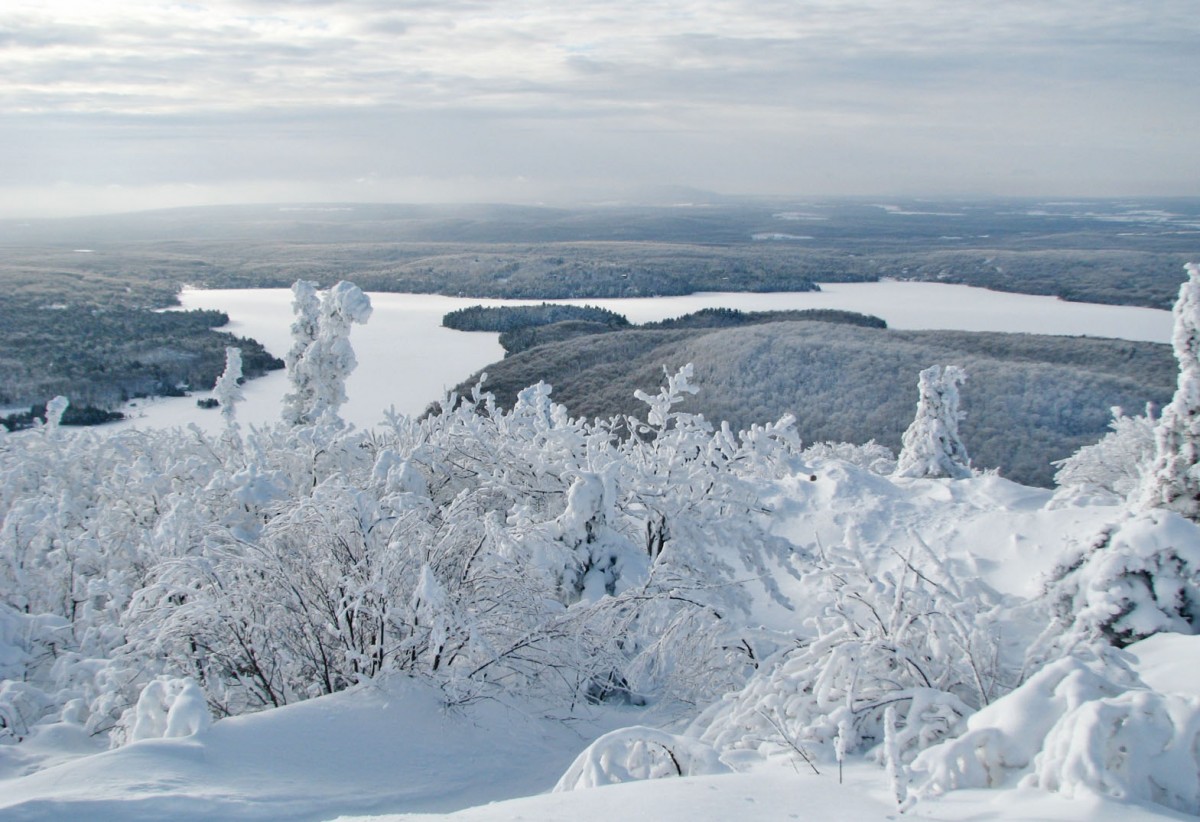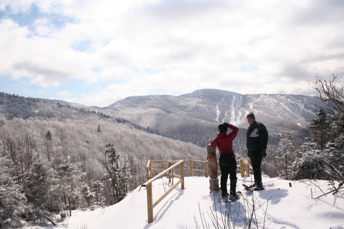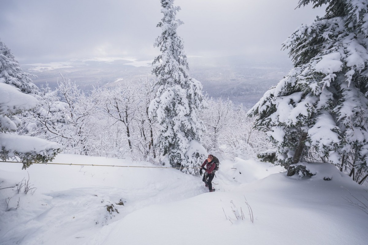 En empruntant la boucle des sommets d’une longueur de 14,2 km, vous atteindrez le sommet du mont Singer, point culminant de la réserve naturelle des Montagnes-Vertes. Surprise! Ici, il n’y a pas de sommet dénudé avec vue panoramique! Vous devrez poursuivre votre chemin plus loin pour avoir droit à un regard sur l’horizon. Malgré le nombre de points de vue peu élevés, vous serez ravis par le charme de la forêt enneigée et par l’achalandage peu élevé de ce sentier.