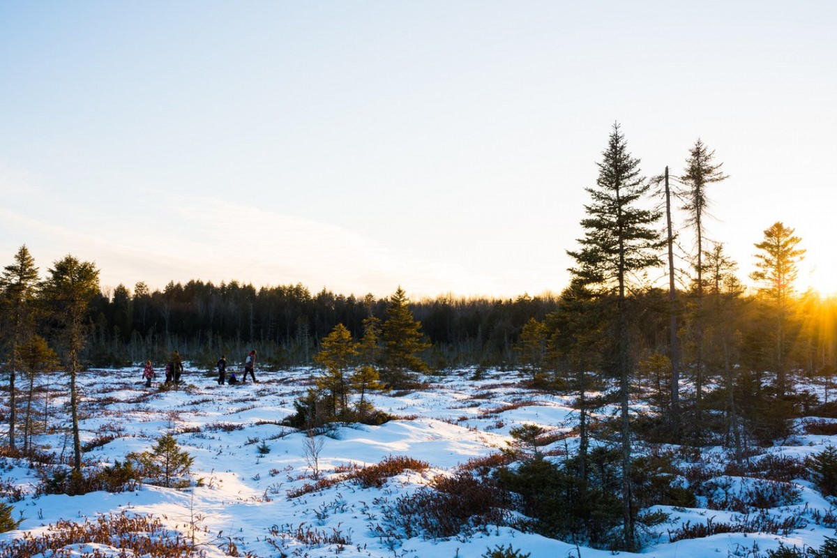 C’est un paysage hivernal bien particulier qui vous attend sur ce sentier où petits et grands conifères dégarnis se côtoient dans une vaste tourbière enneigée. L’endroit est parfait pour se balader en famille en toute tranquillité. Une belle randonnée totale de 8,5 km!