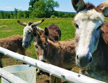 Caressez les ânes de l’Asinerie Les Ânes en culotte, à Sainte-Anne-de-la-Rochelle et procurez-vous leurs produits.