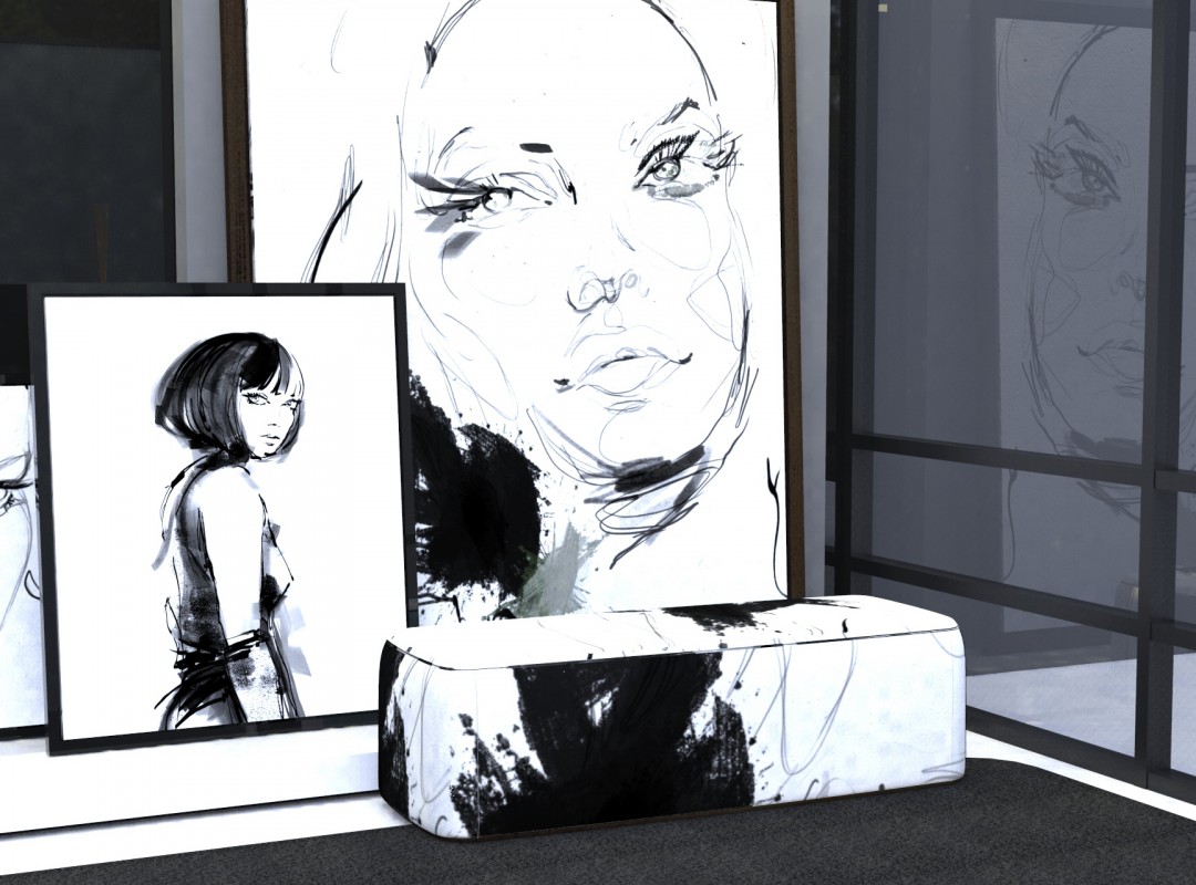 Pour ce créateur, tout est question de lignes; sur papier pour les plans, dans l’espace pour les objets et sur écran pour ses superbes illustrations digitales qui sont par la suite agrandies sur toile.