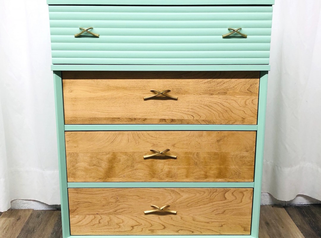D’aussi longtemps qu’elle se souvienne, elle a vu peu ou pas de meubles neufs entrer dans la maison de son enfance. Des meubles refilés par sa grand-mère, qui en avait beaucoup, s’ajoutaient aux autres glanés ici et là. « Ma mère les décapait et en changeait parfois la couleur pour les adapter à la déco, et cette récupération faisait partie de mon quotidien. » Une belle source d’inspiration qui a germée dans l’esprit de la future créatrice pour fleurir des années plus tard alors qu’elle cherchait un peu sa voie professionnelle. Après un DEC en services de restauration, elle fait un stage au restaurant Archibald à Granby. En parallèle, elle a toujours un projet créatif en marche et une amie proche qui l’incite à se lancer dans la revalorisation de meubles. Hésitante au début, elle fini par se lancer et sa signature gagne rapidement plusieurs clients. Elle aurait transformé près de 500 meubles depuis 2008 !