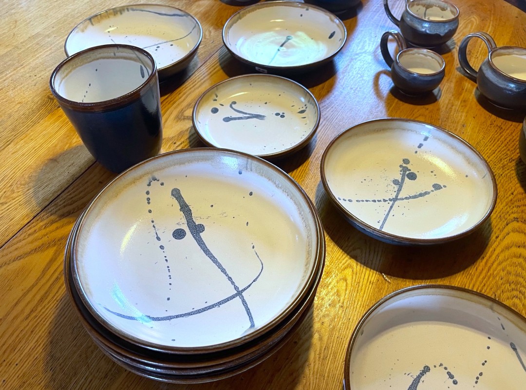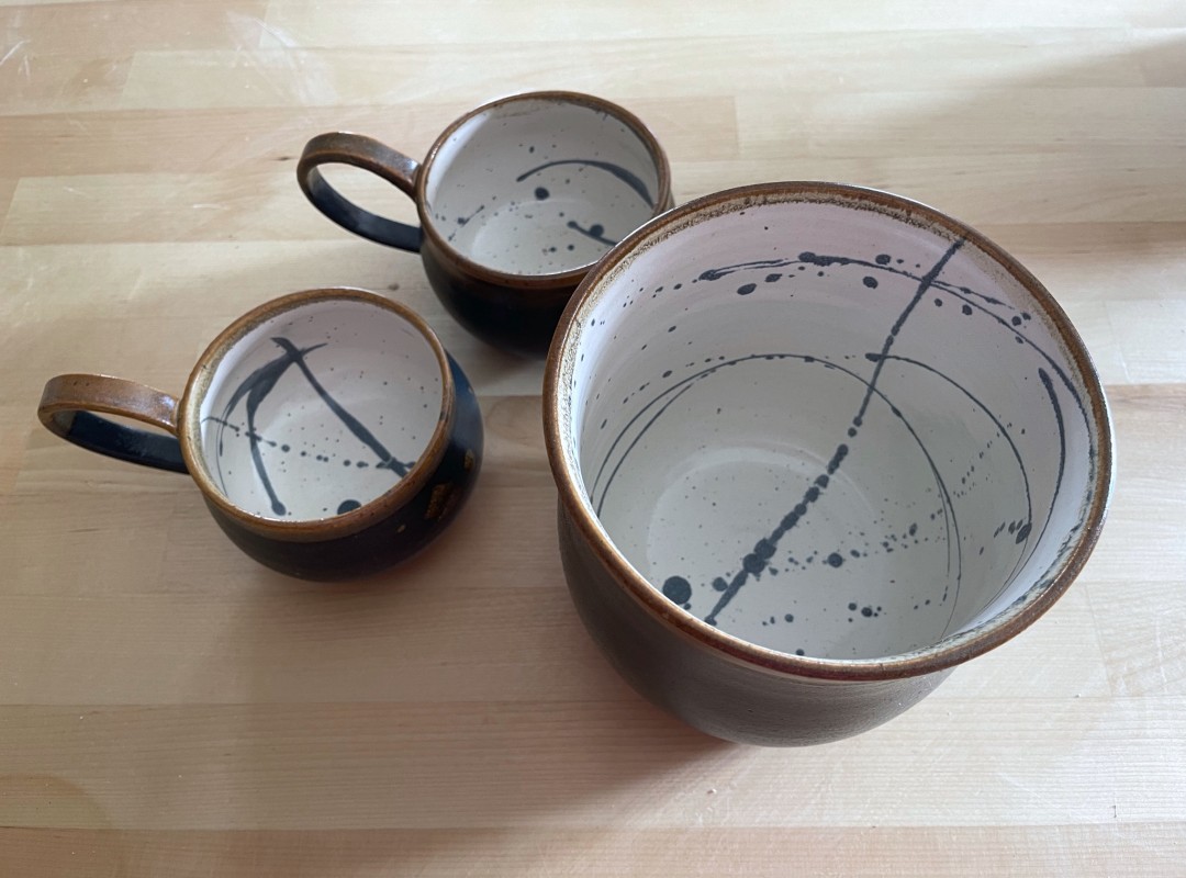 On pressent dans certaines pièces que l’étude des sols l’a fascinée, comme ces pots arborant des textures surprenantes, telles de la roche calcaire rodée par la mer. Elle crée des pièces au fini rustique, alliant utilité et confort, mais sa dernière collection « Ciel d’hiver », est dans un style plus classique, où prône la simplicité et l’élégance. L’intérieur des récipients est habillé de traits de glaçure bleue dans une gestuelle toute en délicatesse, qui ne seraient pas sans rappeler la trajectoire d’étoiles filantes dans le ciel. Peut-être que de créer sous la Réserve internationale du ciel étoilé du Mont-Mégantic (RICEMM) et à moins de 2 km de son observatoire, fait germer dans sa pratique de nouvelles inspirations?