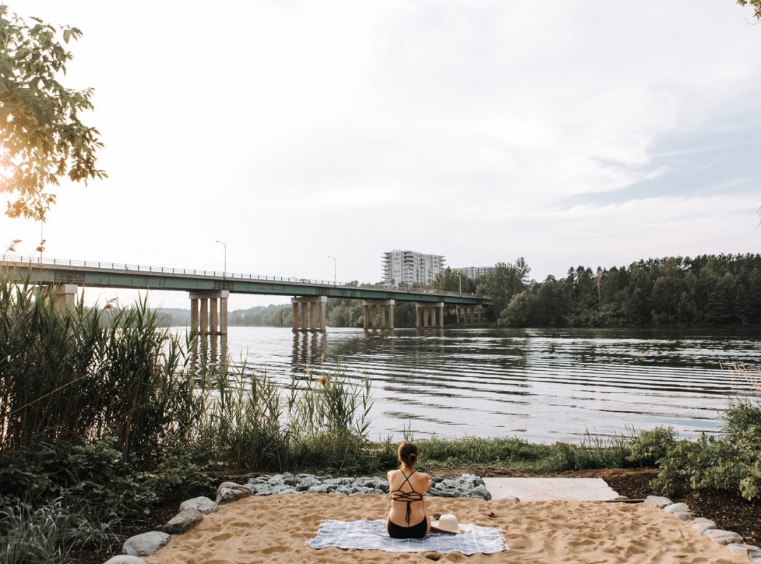 Au départ de l'université Bishop's, traversez la rivière Saint-François en direction du parc Atto Beaver, premier îlot de fraicheur avec une vue splendide sur la rivière. Contournez le camping de l'île Marie, ses arbres centenaires et les lacs via la rue Saint-Francis avant de rejoindre les berges de la rivière. Continuez sur la piste cyclable à la fraicheur de la canopée. Au niveau de la rue du Conseil, vous pouvez admirer de spectaculaires murales qui retracent l'histoire du quartier. Quelques kilomètres plus loin, plongez dans la pleine nature qu'offre le marais Réal-D.-Carbonneau qui propose un sentier pédestre sur pilotis pour aller à la rencontre de l'étonnante biodiversité locale. Enfin, continuez votre chemin le long des berges de la rivière Saint-François jusqu'au parc Jeffrey-Gingras.
