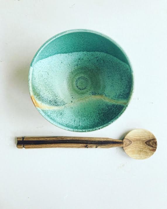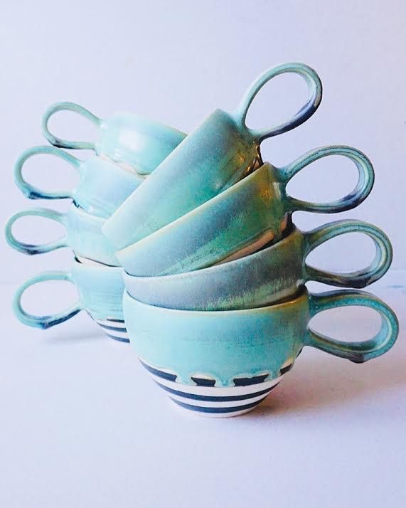 Elle adore chaque étape de la production et prend un grand plaisir à expérimenter différentes techniques, formes, motifs, mais l’univers infini de la chimie des glaçures est au cœur de ses recherches, les testant a des températures pouvant aller jusqu’à 1222 Celsius (2232 Fahrenheit). Jouant avec les superpositions, les accidents de parcours, les imperfections, elles se révèlent douces ou rugueuses, mates ou lumineuses, à l’œil comme sous les doigts. Les teintes turquoise rappelant les bords de mer semblent ses chouchous mais les couleurs sable et de jolis pastels roses et mauves décorent sa dernière collection d’assiettes.