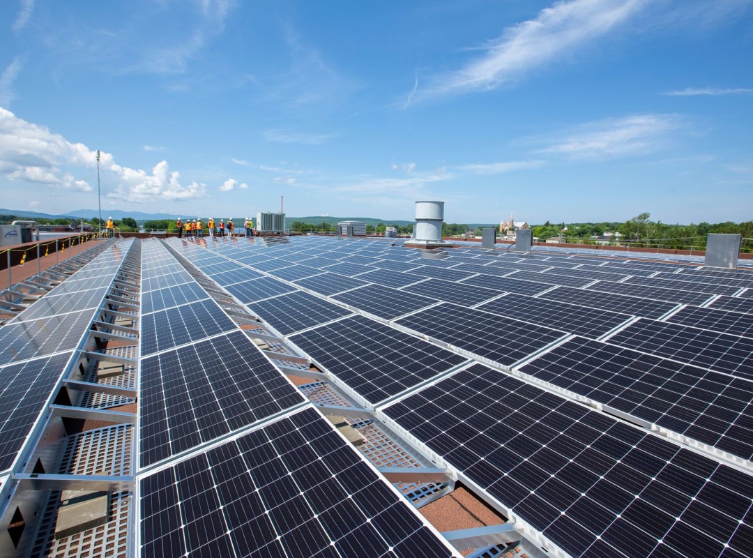 Le saviez-vous ? Les 2 200 panneaux solaires et les batteries de stockage de grande capacité peuvent alimenter en énergie les bâtiments du centre-ville de façon autonome durant plus de huit heures d’affilée lors des journées ensoleillées d’été.