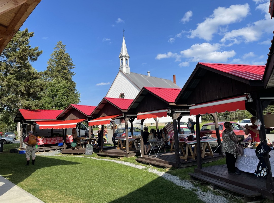 De retour sur la route, et c’est toute la beauté d’un road trip, un brouhaha et un rassemblement de gens attirent notre attention. C’est jour de marché dans le village! Le Marché de la petite école à Lingwick, tous les vendredis de juin à septembre, rassemblent des producteurs locaux de fromages, pains, viandes, agneau, légumes, fruits, tartes, poissons fumés et encore ! Il y a même des artisans et leurs créations, linges de table, tissages, céramique. Une belle ambiance y règne et le Pub sert bières, vin, boissons et pizzas cuites sur place au four à bois.