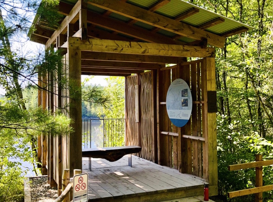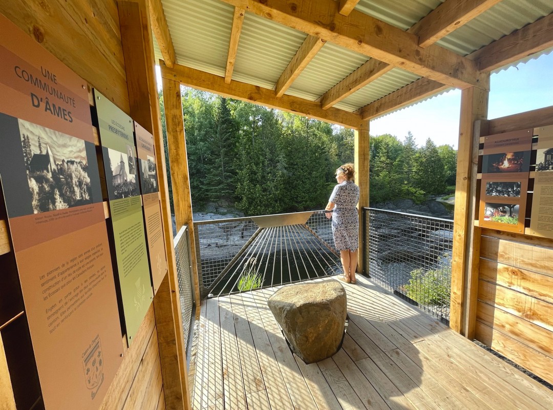 Le lendemain, nous partons à la découverte de la shed de East Angus au parc des Deux Rivières et y passons un bon moment sur les sentiers tout autour. Offrant un point de vue spectaculaire et rafraichissant sur la jonction des rivières Saint-François et Eaton, elle aussi nous plonge dans la vie des premiers Amérindiens qui s’y sont installés.
