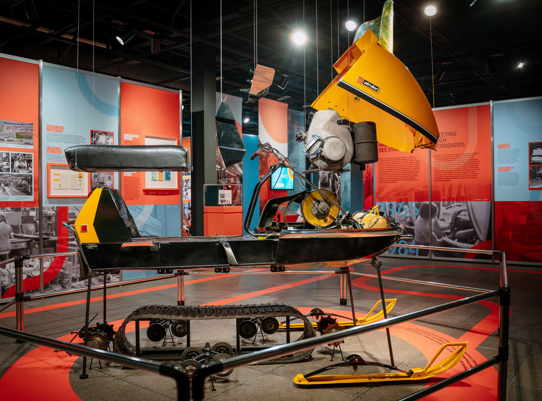 Ensuite, découvrez le génie créatif et les technologies développées par Bombardier et BRP dans un parcours interactif. Admirez l’évolution de la motoneige Ski-Doo® à travers 8 modèles emblématiques. Clic! Prenez-vous en photo et devenez la vedette d’une publicité de motoneige Ski-Doo® de l’époque de votre choix. Imaginez, créez et testez votre véhicule du futur au Studio à idées, apprenez l’origine de la mélodie du métro de Montréal et essayez de la reproduire, explorez une maquette grandeur nature du tramway Flexity de Toronto, pilotez un avion et survolez la ville de Montréal dans un simulateur de vol.