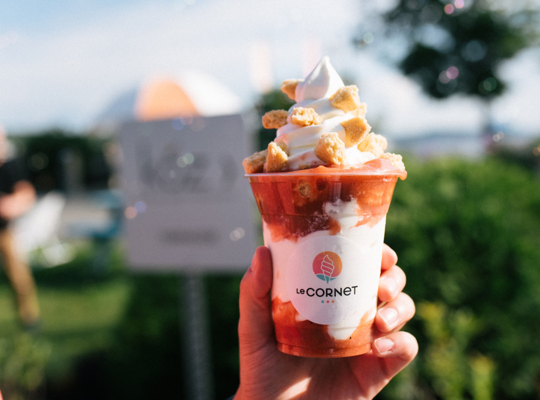 L’expérience Versō se prolonge autour de deux adresses gourmandes accessibles directement depuis l’hôtel. D’abord, la crèmerie LeCornet, où les plaisirs glacés garantissent un réconfort! Un arrêt parfait après une promenade ou avant un détour au lac.