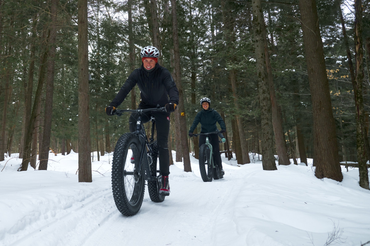 Ah, le fatbike, ce sport génial qu’on peut pratiquer à l’année! Sa popularité ne se dément pas, et nombreux sont ceux qui attendent avec impatience que l’hiver revête son manteau blanc pour s’adonner à leur passion! Au Parc national du Mont-Orford, les amateurs de vélo à pneus surdimensionnés profitent de 25 km de superbes pistes, de niveaux facile à difficile! Propriétaire d’un fatbike? Offrez-vous un abonnement annuel pour pratiquer durant les 4 saisons votre sport de prédilection! Plutôt envie d’en faire un premier essai? De superbes montures vous attendent en location au Cerisier (toujours gratuit pour les moins de 17 ans)! Mais on vous prévient : vous risquez de développer une nouvelle passion!