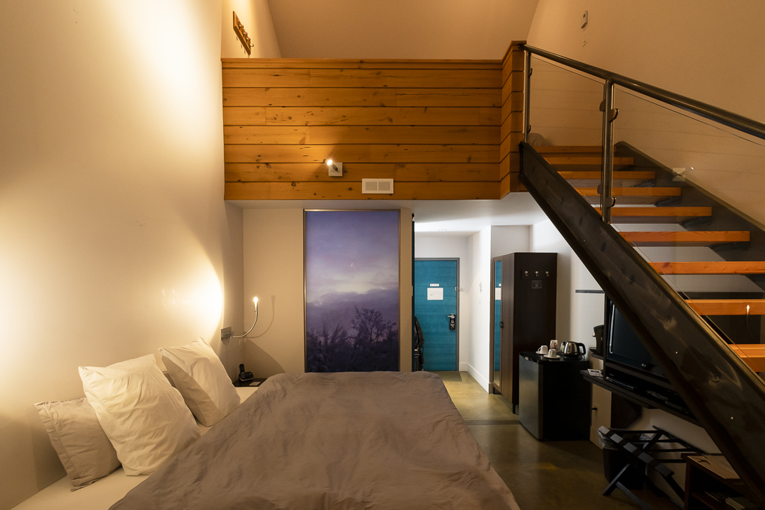 Afin de combler tous les types de clientèle, deux principaux types d’hébergement sont offerts à l’auberge de la Brouërie. Les chambres du bâtiment principal vous offrent des chambres sur deux étages avec une mezzanine qui accueille un autre lit king ou deux lits simples, une salle de bain, et sont équipées d’accessoire pour faire du café, d’une bouilloire, d’un réfrigérateur, d’une télévision, d’un téléphone, d’un réveil, d’un sèche-cheveux et d’un accès internet sans fil haute vitesse. Dans le bâtiment adjacent, les chambres sont quant à elles plus économiques et parfaites pour les familles, les couples ou les groupes d’amis et une cuisine commune tout équipée est mise à la disposition des chambreurs. Dans tous les cas, le confort prime, le design est archi-soigné, et l’atmosphère conviviale est au rendez-vous. Psst! Les clients de l’auberge peuvent savourer un déjeuner chaque matin de semaine, entre 8 h et 11 h. Plusieurs choix sont inclus, et quelques options gourmandes sont disponibles!