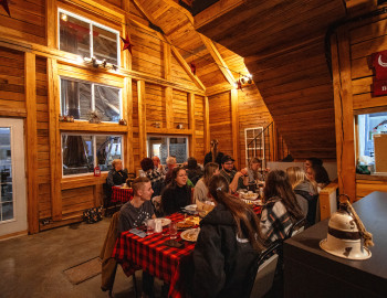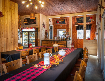 Une cabane typiquement québécoise avec de grandes tablées et une ambiance festive.