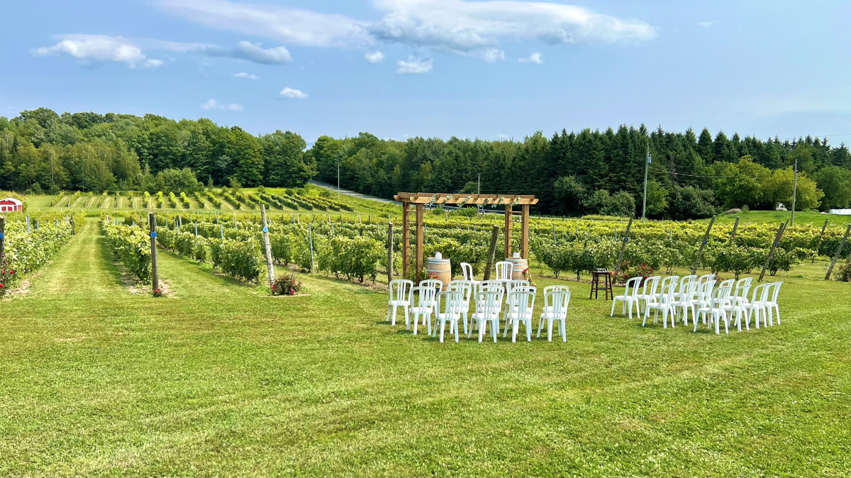 À cinq minutes du centre-ville de Sherbrooke, le Vignoble la Halte des Pèlerins vous propose un magnifique site aménagé tout spécialement pour les mariages, situé au sommet du vignoble et doté d’une vue incomparable.