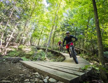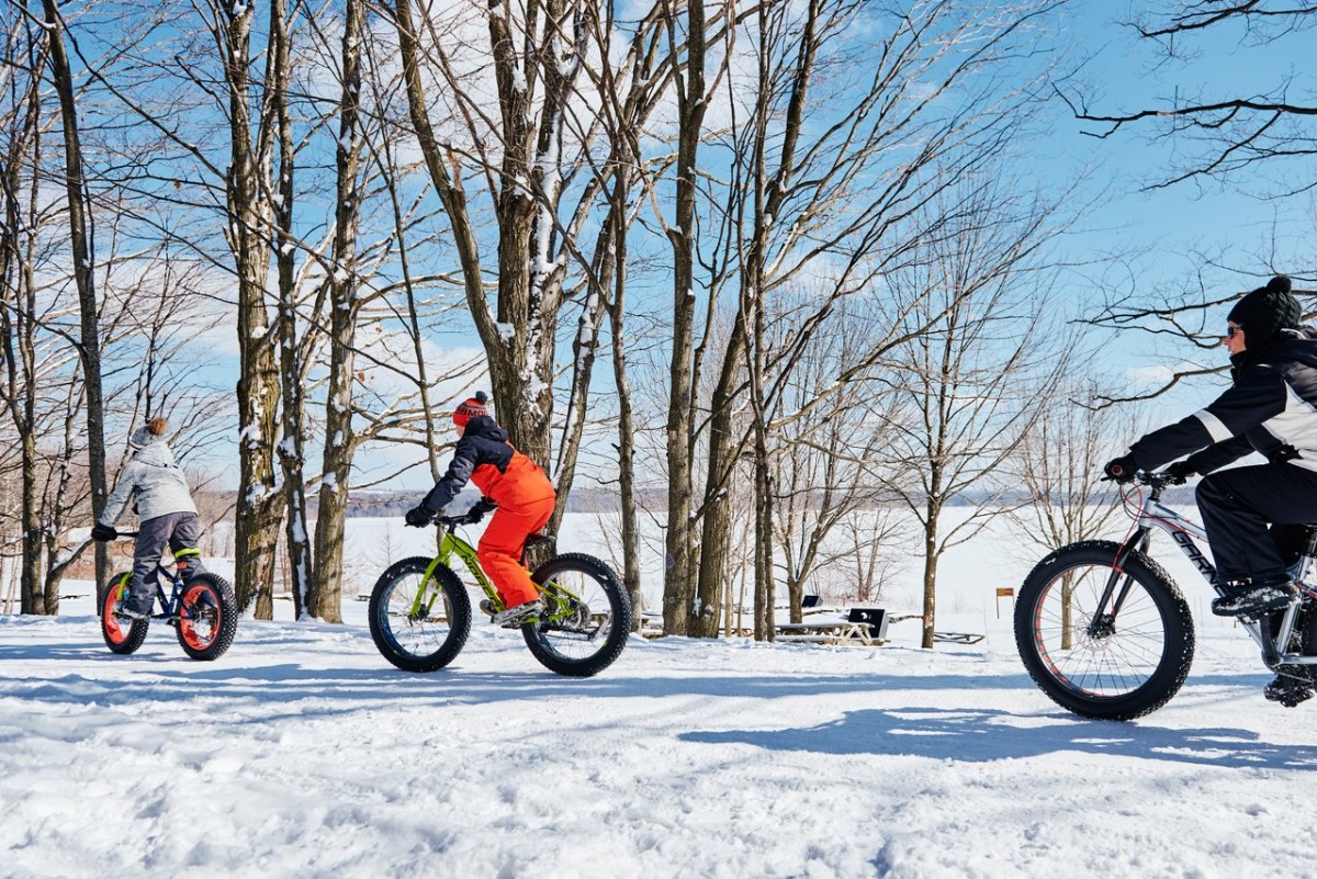 Une vingtaine de kilomètres de sentiers sont également accessibles en fatbike. La location de ces vélos à pneus surdimensionnés est offerte au centre de découverte et de services Le Cerisier.