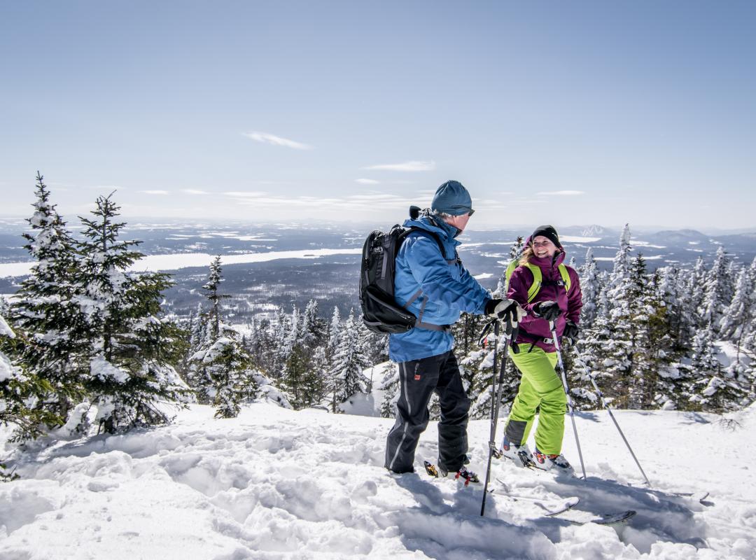 Faire du ski à Owl’s Head et admirer la vue sur le lac Memphrémagog gelé depuis le sommet.