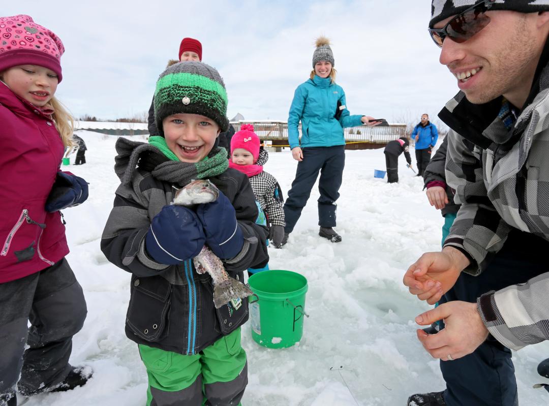 Pêcher sur la glace au Parc Découverte Nature de Coaticook.