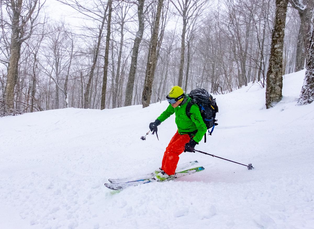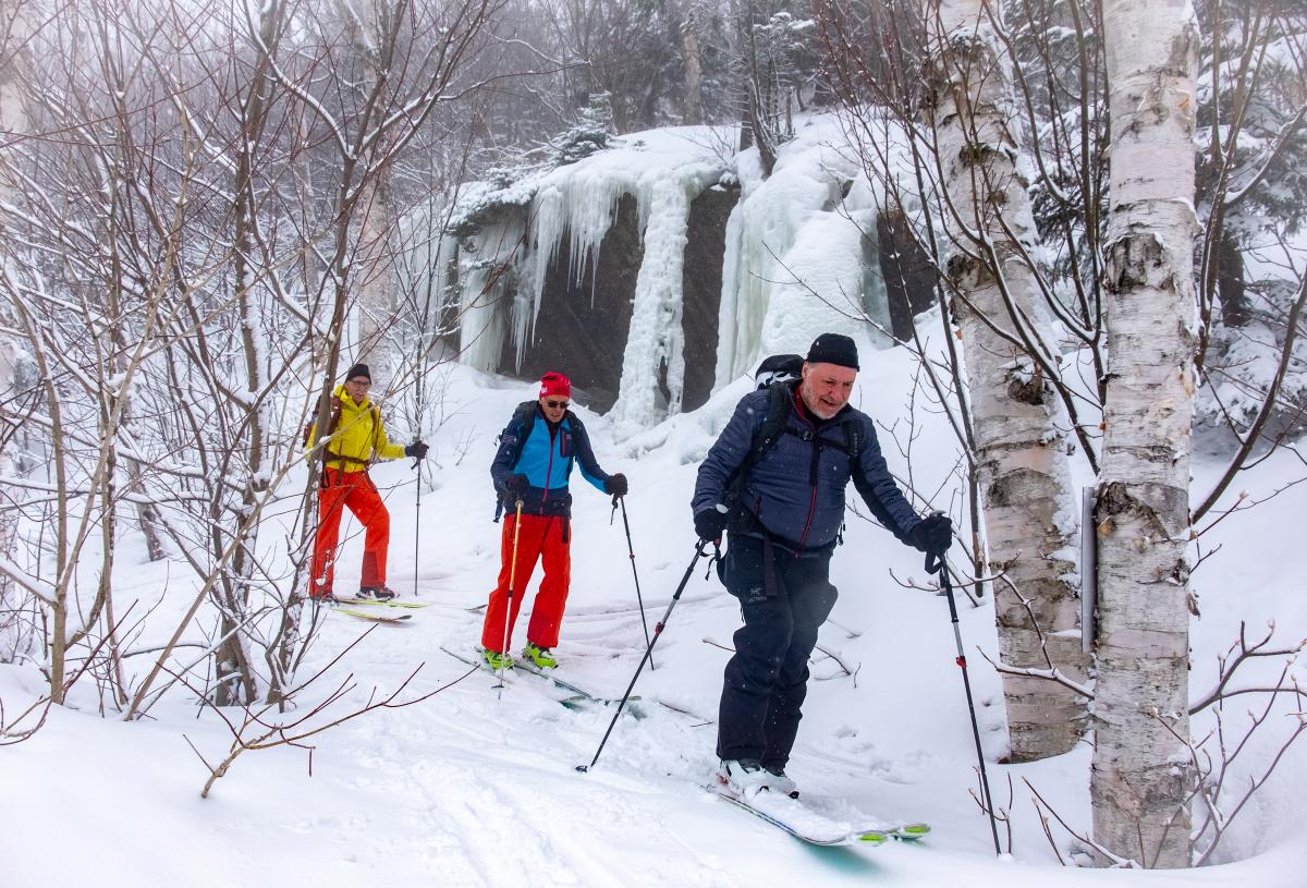 I met this very athletic skier at the foot of Mount Sutton. Along with his friend Denis Bouvier, they are among the pioneers of alpine touring in the region. “We invented this sport in Sutton about twenty years ago,” laughs Denis Bouvier with his wide grin. With Raymond Julien, another “skin” fanatic, the accepted expression given to aficionados of the sport, I left on a Friday morning to explore this uphill trail set on the mythical Mount Sutton ski hill.