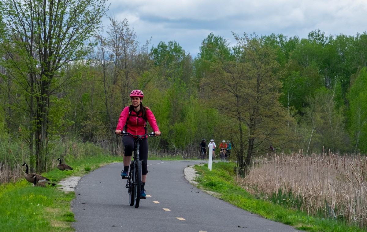 La saison de vélo commence et pour me remettre en jambe, je me suis rendu jusqu’à Granby. Mon objectif : pédaler sur l’Estriade, une piste que j’avais depuis longtemps dans ma mire, car ce corridor vert peut se targuer d’être la toute première piste québécoise aménagée sur une ancienne voie ferrée.