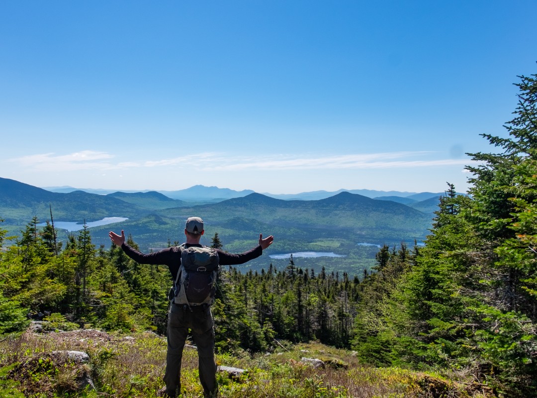 L’ascension du Cap-Frontière, c’est la montée du calvaire. Ça grimpe sans relâche. Une récompense m’attend toutefois sur cette élévation perchée à 1150 m : les vues sur les montagnes du Maine qu’offre la forêt dégagée sur la frontière. Ébahi, j’en suis à la moitié de mon défi et il est 9 h 30. C’est la pause lunch.