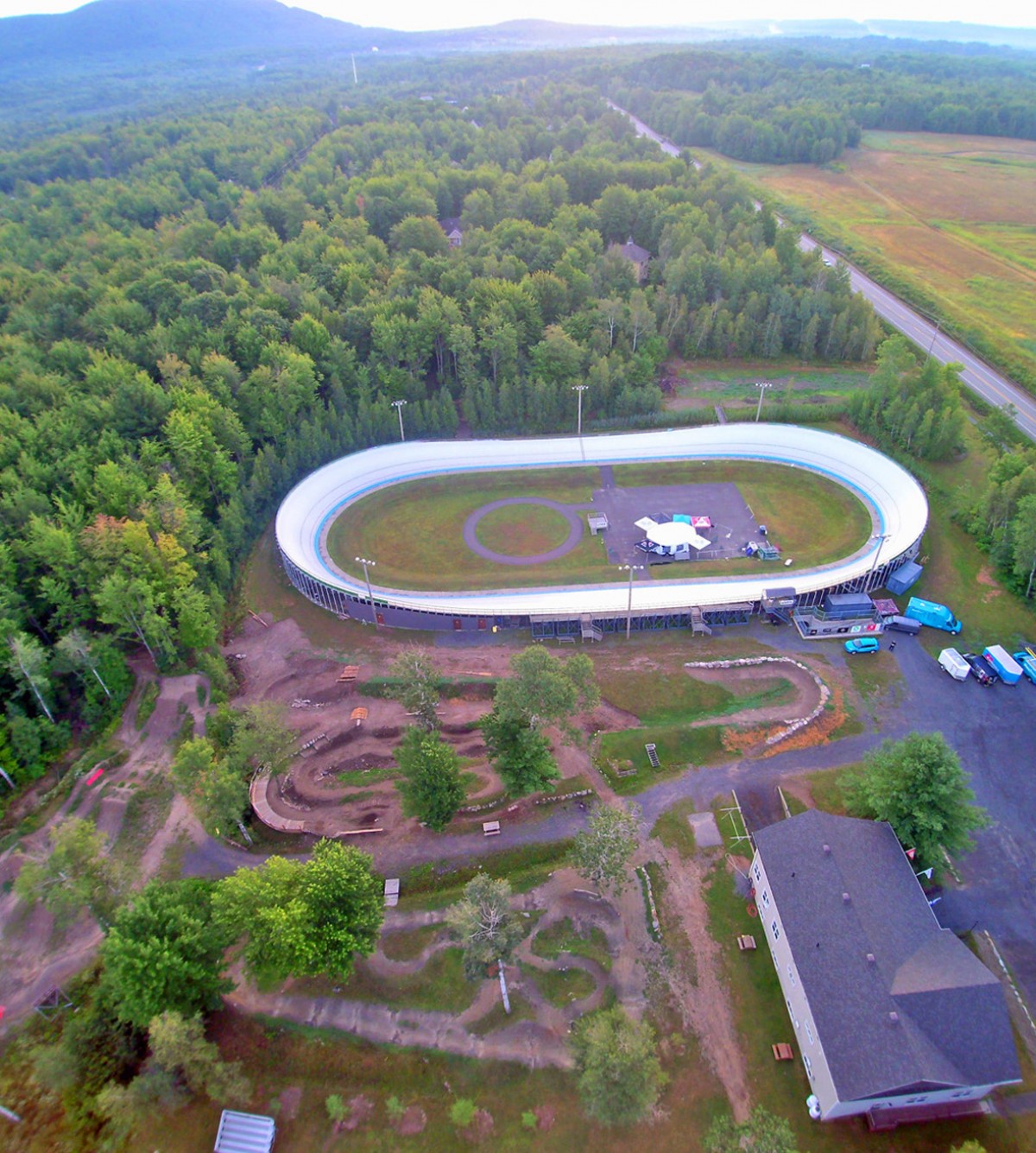 NDLR : La pelletée de terre symbolique du futur centre sportif, qui comprendra aussi une piste d’athlétisme, un terrain multisport (tennis, badminton, etc.), des trampolines et un gym, s'est déroulée le 22 avril 2021, soit 30 ans après la fermeture du vélodrome olympique de Montréal. Les travaux sont en cours de réalisation et le nouveau centre devrait ouvrir à l'été 2022. Le cyclisme est bien choyé à Bromont.