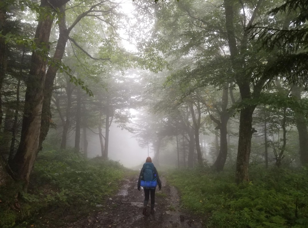 La descente s’amorce dans le calme. Il règne une atmosphère mystérieuse dans la montagne. On dirait que nous sommes seuls au monde tellement la brume est dense. Cinquante minutes plus tard, nous sommes de retour au stationnement. C’est maintenant l’heure de regagner la civilisation et de se diriger vers Le Cafetier où nous attend café et déjeuner bien mérités!