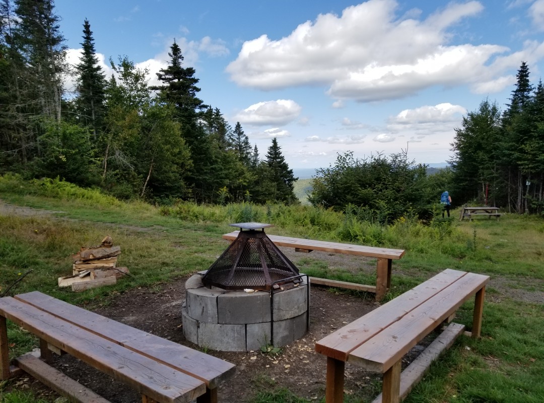À notre arrivée, nous prenons quelques minutes pour admirer le paysage puis, tel des conquérants, nous plantons notre tente sur l’emplacement qui nous est réservé. Après quoi, nous partons explorer le sommet. Tous les sites sont bien espacés les uns des autres et sont tous doté d’une table à pique-nique. Pour ceux qui ne souhaitent pas trimballer leur tente, deux abris en bois sont aussi disponibles. Et stratégiquement répartis au sommet, deux endroits sont désignés pour les feux de camp communautaires. Le bois, sous le contrôle du gardien des lieux, est fourni gratuitement.