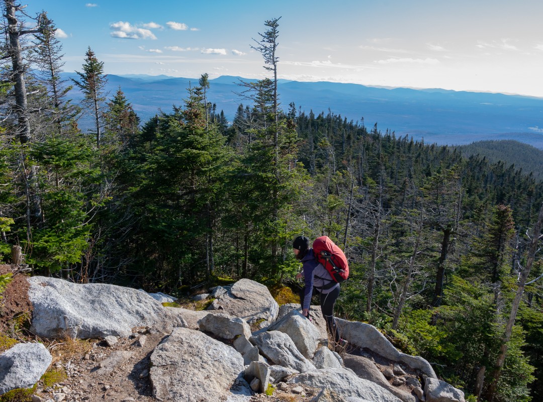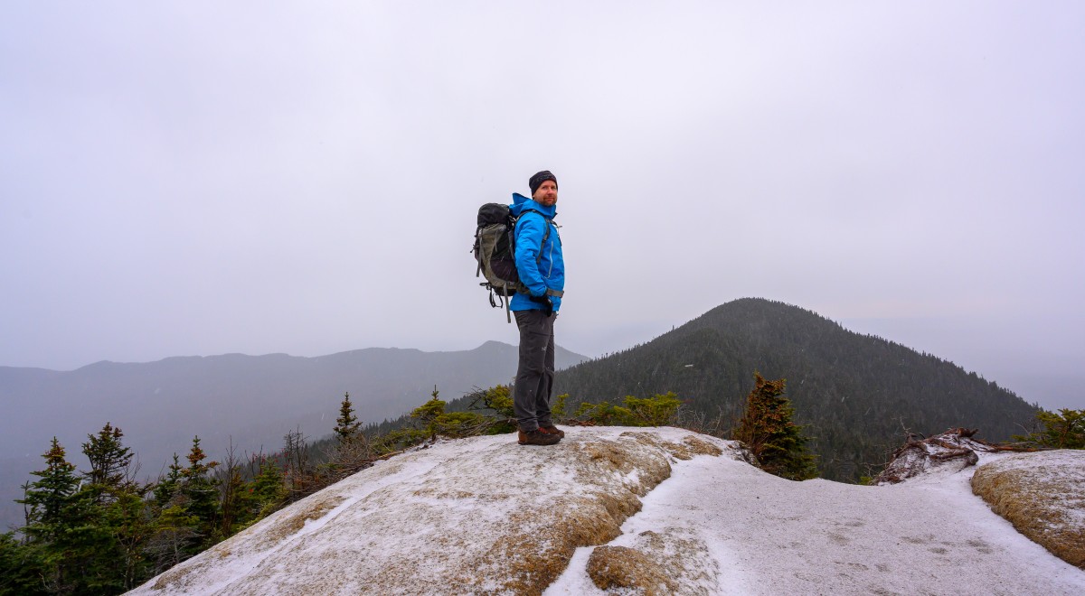 The next morning, after our spectacular sunrise, winter suddenly manifested itself! A mini-snowstorm hit the massif, reminding us that we’re at an altitude of more than 1,000 m., where the cold season usually lasts six months. The mountains disappeared in the mist; an ambiance I adore! It was under these winter conditions that we completed the Mount-Victoria loop with its amazing points of view, before we headed back down to our car; two days totalling a distance of about fifteen kilometres on beautiful half autumn, half winter-like trails.