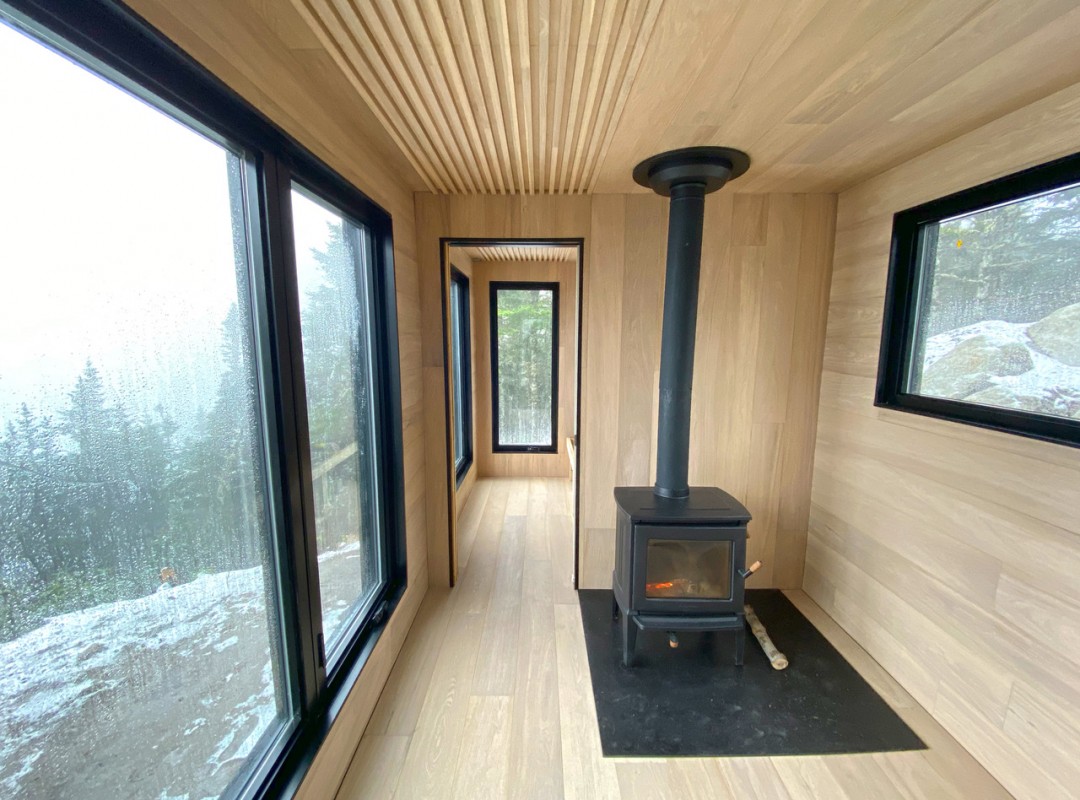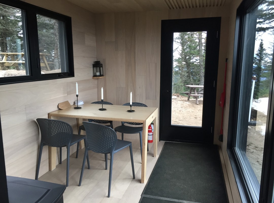 When we arrive, my girlfriend and I were amazed by the beauty of the interior design, not at all rustic, you know, like the traditional log and plywood shelters. Here we found quite the contrary; elegant wood panels cover the walls, floor and ceiling of this old equipment depository, giving it a true “Scandinavian chalet” ambiance.