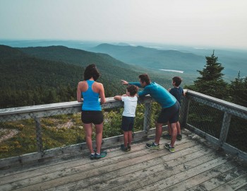 To reach the shelter, we hiked up Mont Saint-Joseph on a 3.5 km trail with our backpacks containing what we needed for the night. On the way, we enjoyed the many points of view overlooking the region and the entire Mont Mégantic massif with its three summits of more than 1,000 metres.
