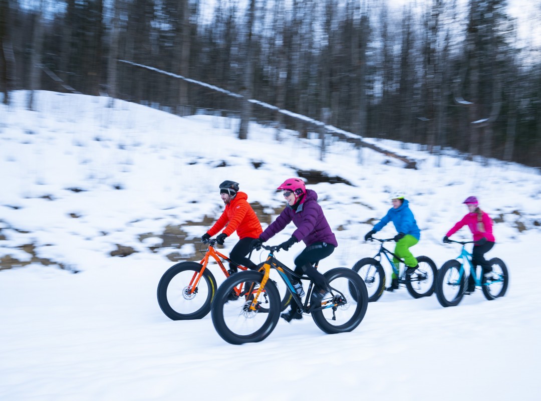 Découvrez nos nombreux sentiers et prenez plaisir à pédaler dans la neige.