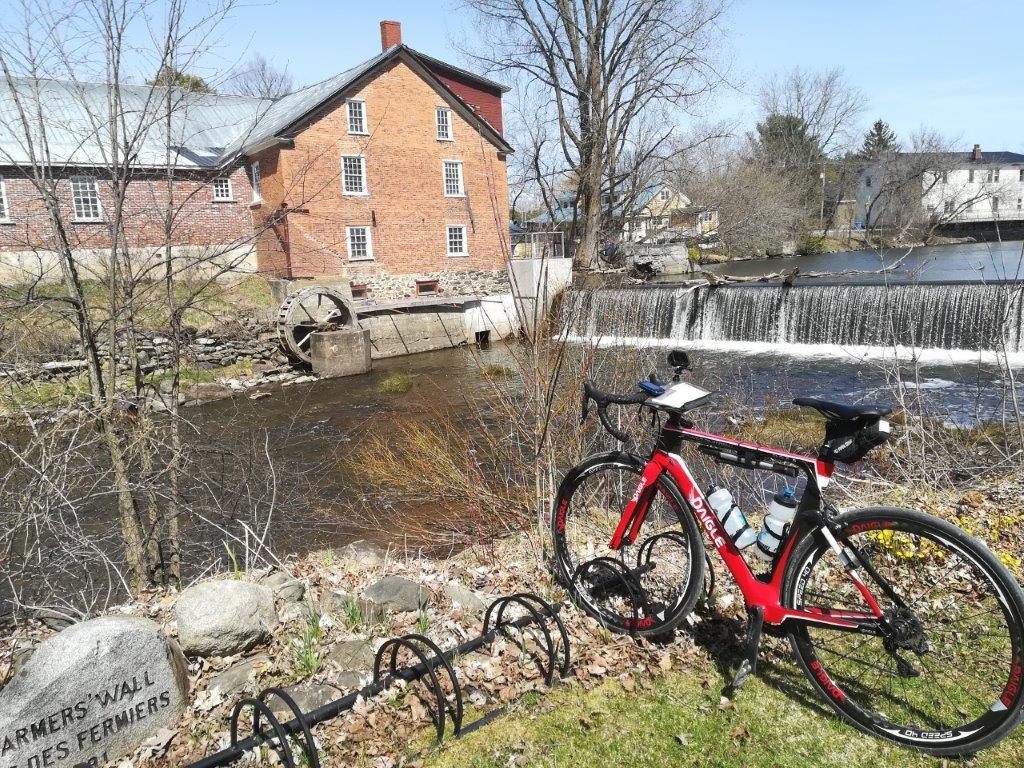 Avant d’enfourcher nos vélos, on a pris notre temps à Bedford, petite « ville de campagne » qui a été fondée en 1780 alors que des loyalistes, fuyant la révolution, américaine s’amenèrent. Bedford, indissociable de son exposition agricole qui aurait célébré sa 197e édition cet été, n'eut été du foutu coronavirus... Coups d’œil sur le centre-ville, la rivière aux Brochets, les ancestrales et nous voilà partis.