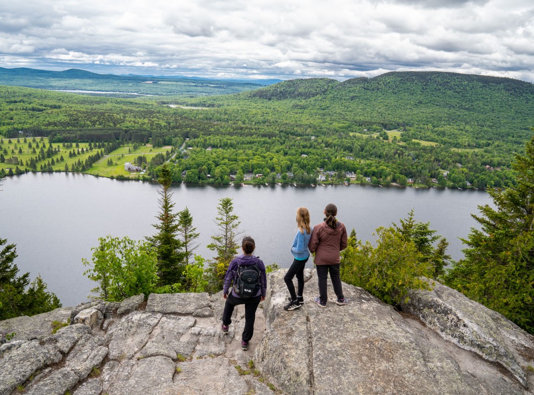 Nous chaussons nos souliers de marche le lendemain afin de conquérir le mont Pinacle, dont le sommet culmine à 675 m d’altitude. Sa particularité : son versant ouest est constitué de falaises coupées au couteau, qui domine de manière spectaculaire le lac Lyster. Son profil singulier en fait l’un des plus beaux reliefs du Québec.