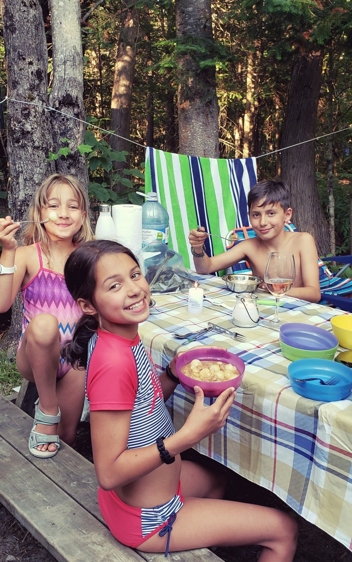 Voici une petite photo d’enfants trèèèès heureux de déguster notre classique souper en camping !