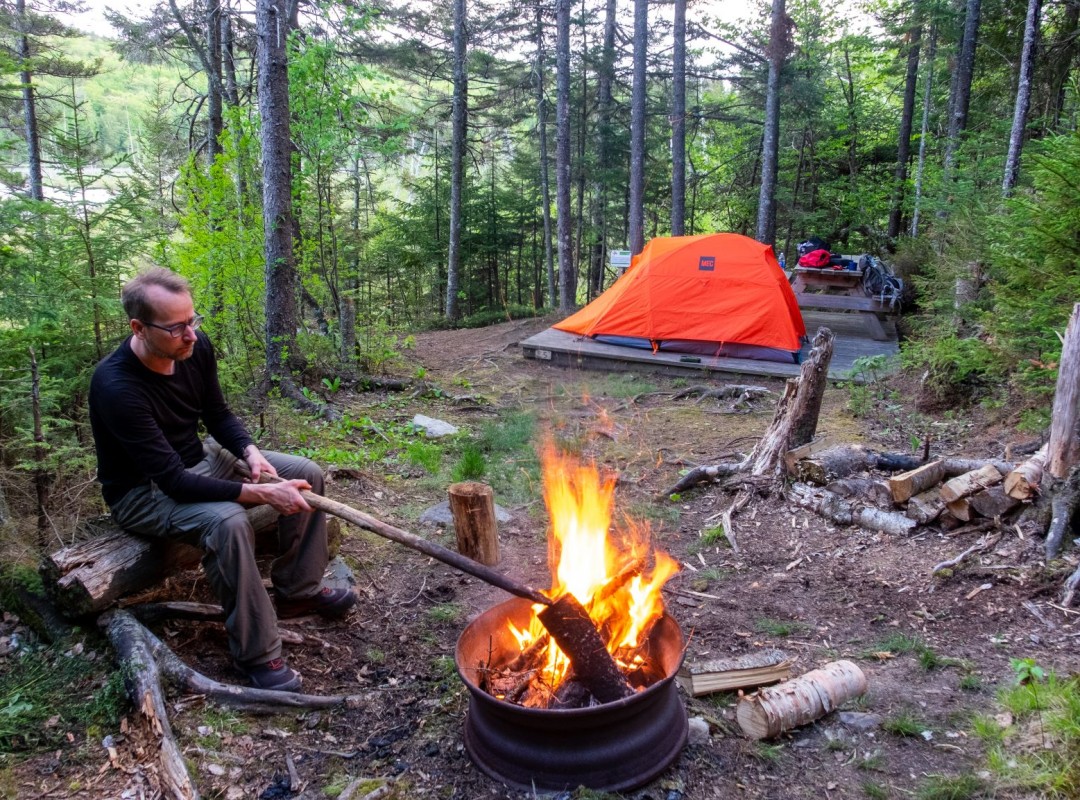 De retour à la base, on découvre le joli camping des lieux, mon coup de cœur. Cinq emplacements de camping rustique sont blottis sur le lac Émilie, le plus grand milieu humide de la municipalité de Saint-Robert-Bellarmin. Chaque emplacement a son charme et procure une grande intimité. On s’y rend en transportant son attirail de camping dans un petit chemin sinueux, délaissant la voiture au stationnement. On peut aussi dormir en refuge et encore sur des plateformes de camping près du sommet.