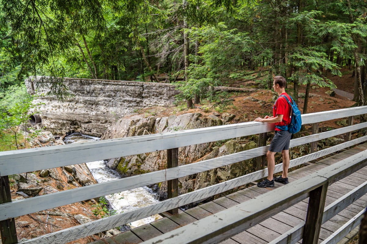 L’autre piste grand public est la boucle de la Poudre, qui mène aux vestiges de ce site industriel, toujours en suivant les méandres de la rivière Watopeka. Plusieurs tables à pique-nique sous les arbres invitent à casser la croûte. Charmant. L’accès à ce parc historique est gratuit.