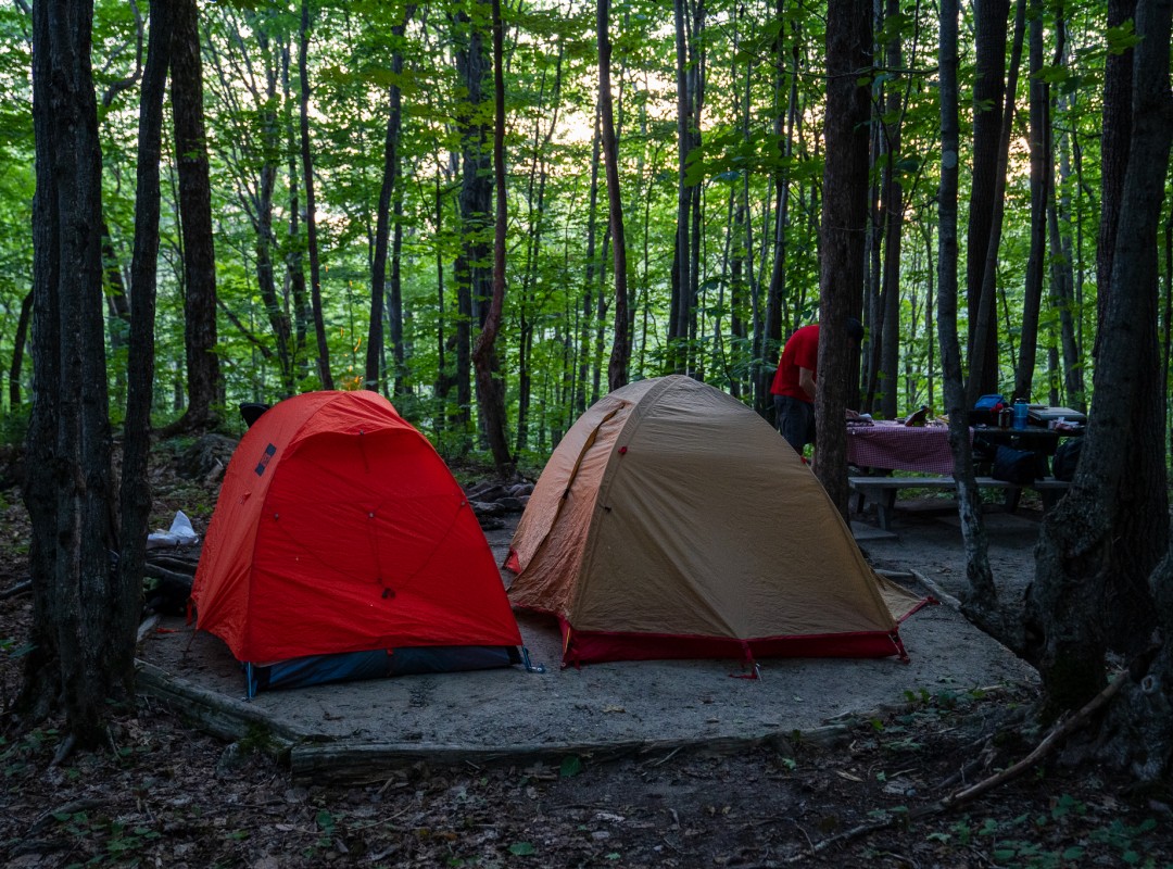 Besides hiking, there’s also the campground at the foot of the mountain. Three rustic sites, five prospectors’ type tents, four wilderness campsites are available for overnight visitors. I especially loved their rustic sites set under a thick forest canopy. On warm days, they offer refreshing cooler air. By the end of the evening, I surprised myself needing to put my vest on, even though the temperature had climbed into the 30 degrees during the day. There’s no need for any type of air conditioner here. If you like to experience unusual accommodations, the Parc régional du Mont-Ham has recently started offering six Amerindian-inspired teepee rentals.