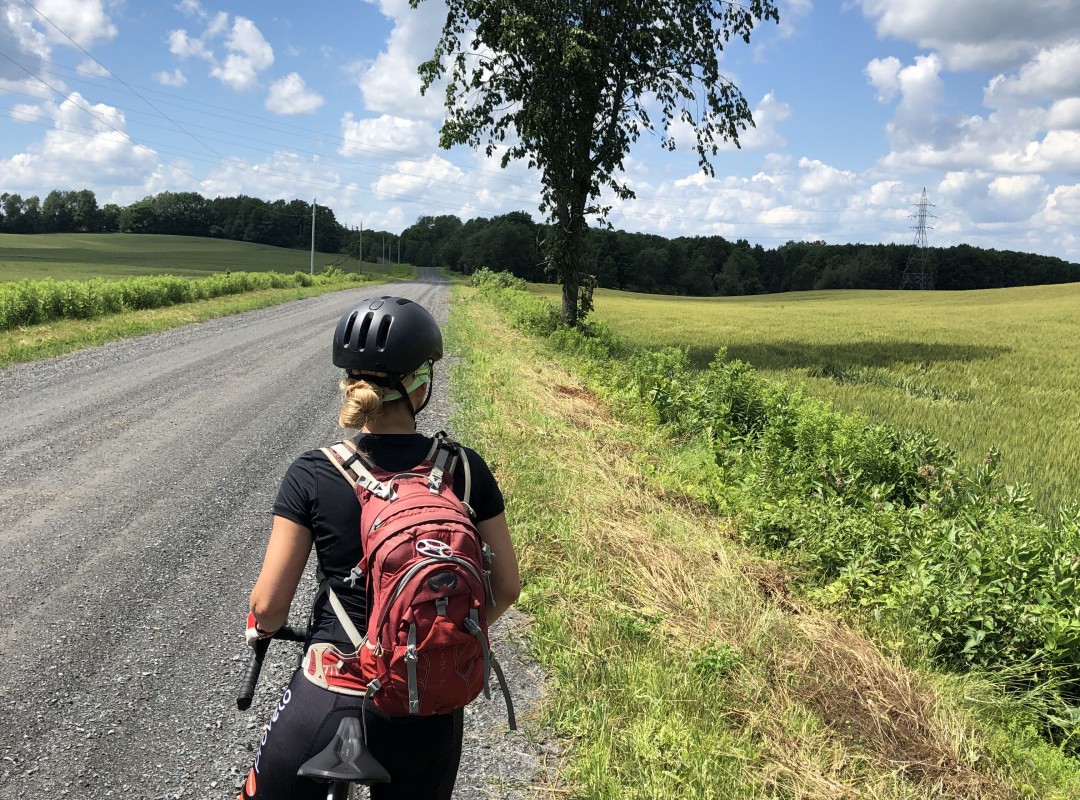 Il a fait particulièrement chaud, ajoutant au défi de la journée. Mais somme toute, j’ai trouvé le circuit plus accessible que je l’aurais pensé. Il faut cependant avoir de bons pneus pour rouler sur ces chemins de gravelle et quand même de bonnes jambes pour ces itinéraires vallonnés, mais si spectaculaires!