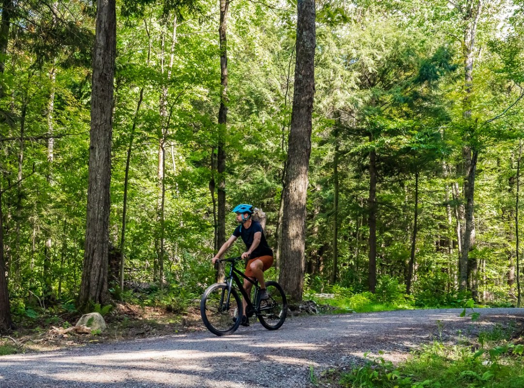Pendant longtemps, le parc national du Mont-Orford était divisé en deux. Les campeurs du secteur du Lac-Stukely ne pouvaient accéder au secteur du Lac-Fraser sans sortir du parc et vice-versa. Depuis 2019, une nouvelle piste de vélo en poussière de roche comble cette lacune.