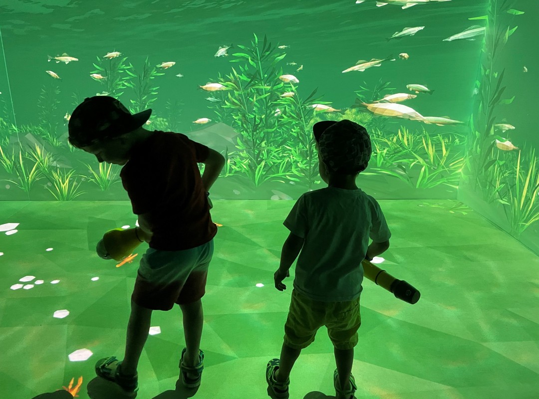 We decided to end the adventure by participating in the immersive indoor game. It required us to carry out several missions with the help of flashlights and giant magnets in order to protect the fish from different threats (invasive plants, rubbish, etc.). The goal was to collect as many points as possible. Everyone had a wonderful time! you could even hear our voices from outside because our enthusiasm was so great. While strolling about the site, a new structure caught my attention, so I set out to do a little investigation. This summer, they’ll be launching a new installation. It’s an outdoor interactive game for children of all ages testing both their motor skills and knowledge. The opening date is still to be determined, but it will definitely be a fun new feature for the kiddos.