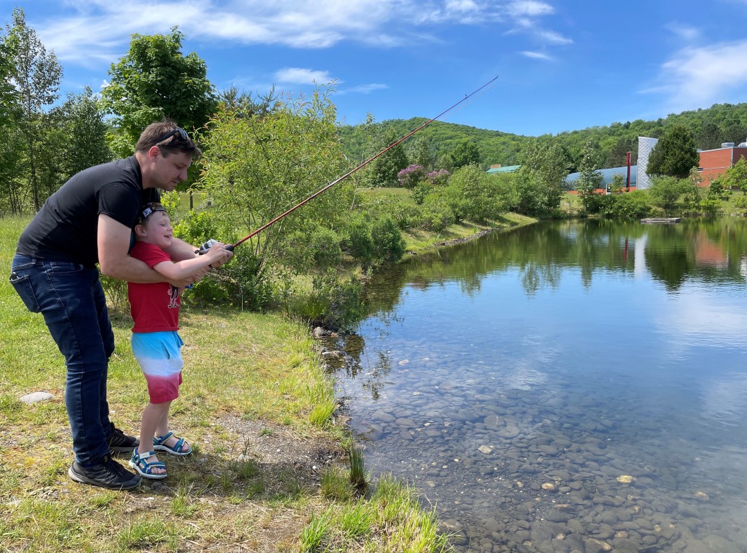 Lunch box in hand, our skin coated with a good layer of FPS 45 and offering our most beautiful smiles, we headed out to Coaticook, at the Parc Découverte Nature, to have our children enjoy their first fishing experience.