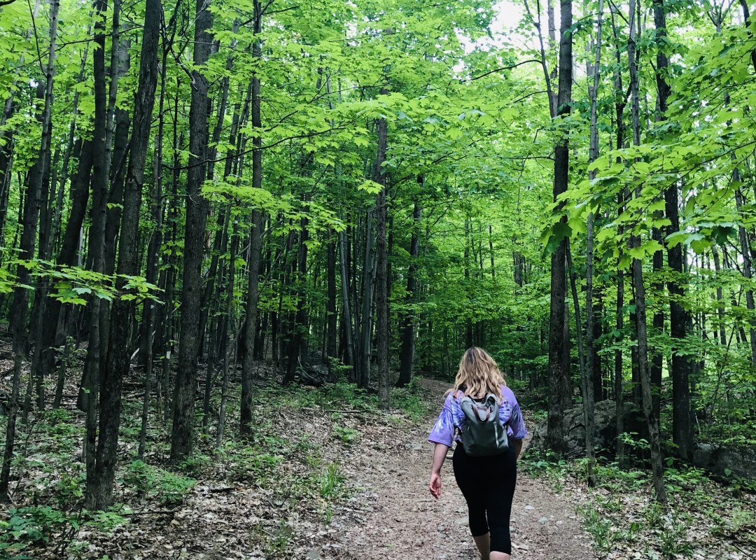 Very happy to meet again with Katia and Maude, we enthusiastically set off on the parc des Montagnards trail for a 4.5 km loop towards one of the peaks of Mont Shefford. Surrounded by this green forest and protected in the shade of the trees, I immediately feel at ease. The short 178-meter ascent quickly leads to the 525-meter summit which offers a magnificent view of Brome Lake and the Montagnes-Vertes Nature Reserve. Although the trail is rated intermediate, I would suggest that it’s accessible to most people, due to its low elevation and relatively short length.