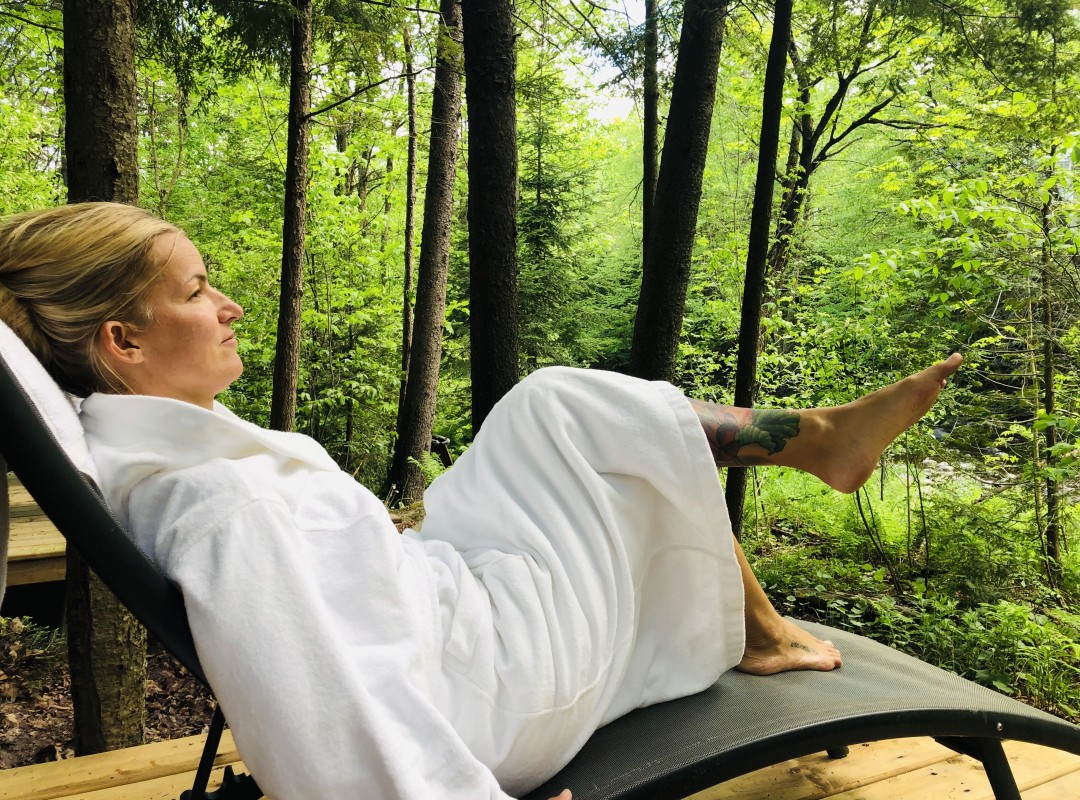 In the morning, Maude and I surprised by the rain, allowed ourselves to stretch our lunch out and relax for a while in a hammock chair, coffee in hand. Then we set off towards Magog to rediscover the Spa Nordic Station. In my opinion, this spar is rather special, renowned in Quebec for offering the most extraordinary and immersive natural environment. We can’t resist going straight down to the edge of the river to dip our toes. I also had to take advantage of the Signature massage, created by the Spa Nordic Station team, a wonderful sensory experience with flavored oils to the sound of traditional music. It’s a real blessing and well deserved especially after the long hike the day before. The ultimate in disconnecting before returning to work. Spa Nordic Station is also renowned for its citrus-flavored Russian banya - an Eastern Townships exclusive – combining both the intensity of heat and steam for an extreme sweating experience. If you are a fan of thermotherapy, I bet the banya will be a crush!