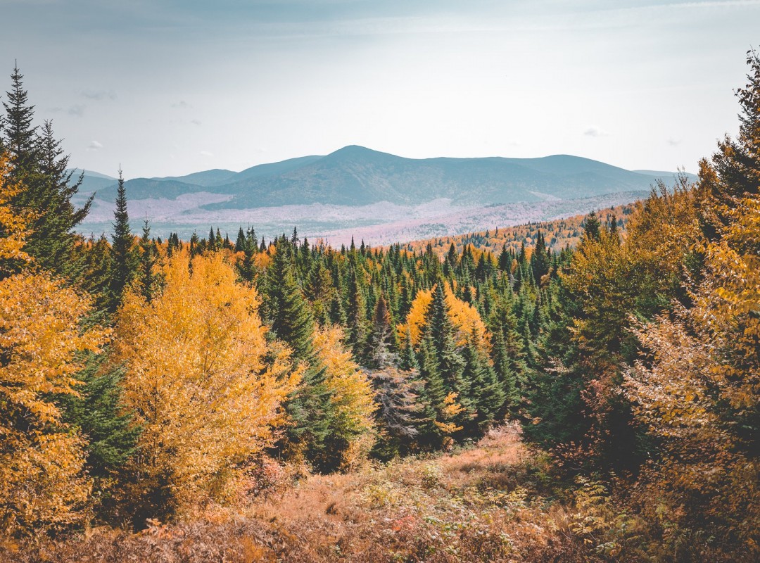 Presque seuls au monde, nous avons croisé un seul autre couple durant tout le trajet. Sereinement, nous avons pu explorer les splendeurs des sentiers qui sillonnent la frontière canado-américaine. Quel sentiment particulier de nous promener ainsi sur les limites de notre territoire! Les 800 mètres de dénivelé franchis nous ont permis d’atteindre les sommets de la montagne de Marbre et du Mont Saddle, et d’avoir une vue exceptionnelle sur le Mont Gosford, la plus haute montagne du sud du Québec.
