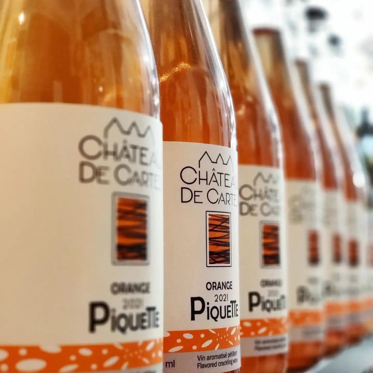 Historiquement, le terme « piquette » signifie un vin de table de basse qualité. Néanmoins, cette façon de faire du « vin » est une technique écologique qui redonne une deuxième vie au marc de raisin, et cela permet au producteur de nous offrir un produit totalement différent que le vin. Stéphane Lamarre, vigneron et producteur, nous a gardé son merveilleux marc de raisin après l’avoir pressé pour en faire son vin principal. Ensuite, il y ajoute son jus de pomme pour réhydrater le mout de raisin. Le résultat final est justement parfait pour l’apéro. Ce vin pétillant aromatisé à la pêche et l'eau de rose est bien sec, léger en alcool et l’effervescence est moins agressante qu’un Champagne, ou un crémant.