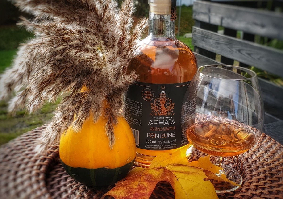 Si vous n’avez pas encore essayer les hydromels, voici un magnifique produit pour vous initier. L’Aphaïa est un vin de miel de sarrasin qui a vieilli un an en barriques de pinot noir de Niagara. Au premier nez, les arômes de sarrasin se font très présents, mais par la suite, vous percevrez aussi des notes de noix, de dates, de bois et d’épices. La texture en bouche est incroyablement soyeuse.