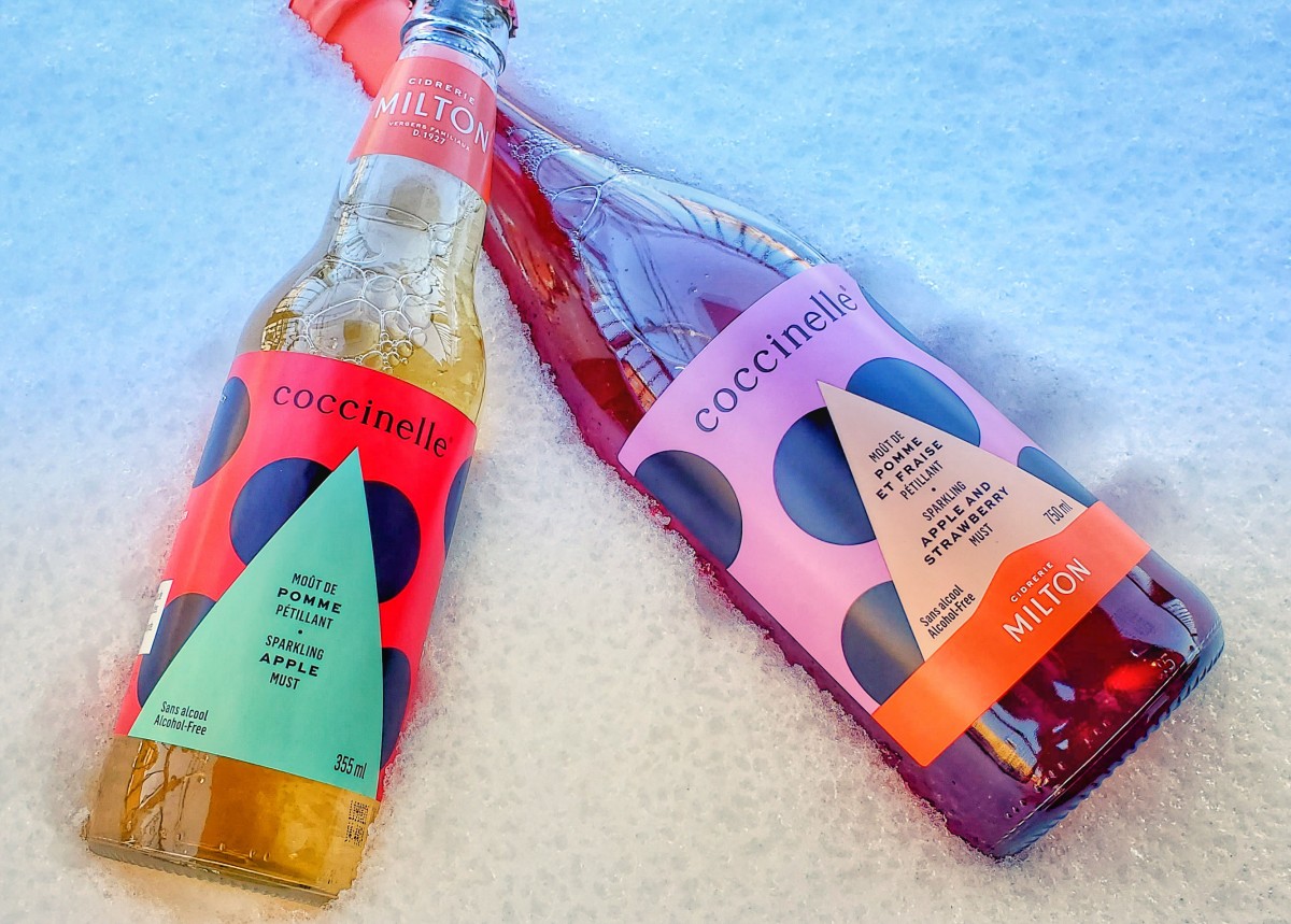 Pour une option plus fruitée et tout aussi rafraîchissante, la Cidrerie Milton vous propose sa gamme Coccinelle, un produit pétillant et festif élaboré à partir de moût de pomme à 100% sans sucre ajouté, le tout gazéifié. À ma grande surprise, lors de mon test de goût, c’était beaucoup moins sucré que ce que j’aurais imaginé. J’ai littéralement eu l’impression de croquer dans une pomme en plein mois de septembre sans l’effet sucré! Une option pomme-fraise est également disponible. C’est d’ailleurs souvent le coup de cœur des petits. Bon à savoir, les moûts de pomme Coccinelle servent aussi d’ingrédients de choix pour élaborer de bons mocktails, dont le Kir « Breton » sans alcool, fait avec :